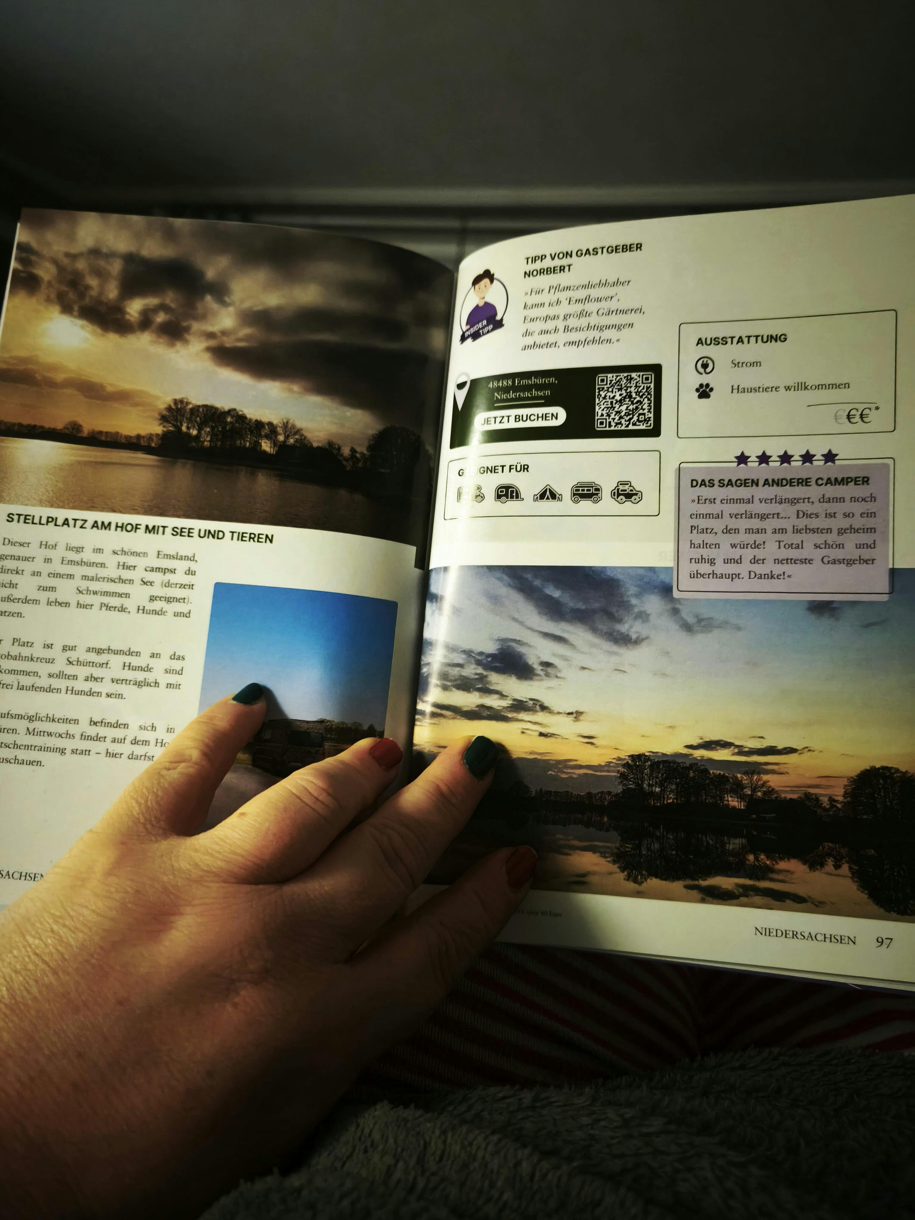 Ich stehe mit meinem Wohnmobil so gerne am Wasser – vor allem meine Vierbeinerin Lotte liebt es, ihr Schnäuzchen und ihre Pfötchen hineinzutunken 🐶💦. Deshalb habe ich mir auch den Reiseführer bestellt und bin super zufrieden damit! Den ein oder anderen Stellplatz habe ich schon besucht, und natürlich stehen noch einige auf meiner To-do-Liste.
