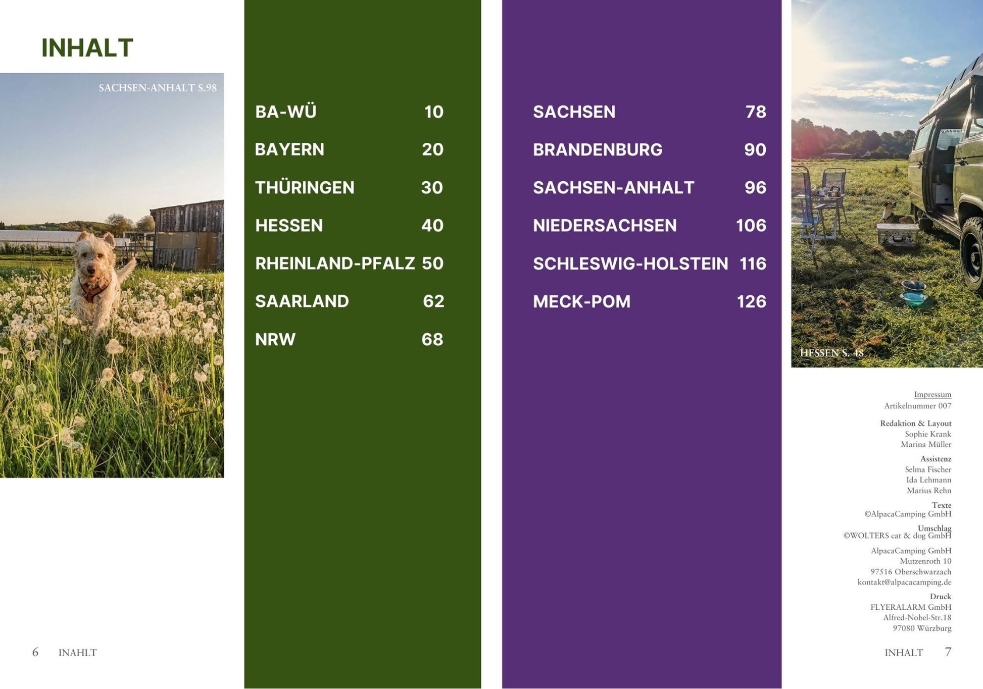 Highlights und Geheimtipps: Du entdeckst unsere naturnahen Stellplätze inklusive echter Geheimtipps der Gastgeber. Wo gibt es die besten Brötchen im Dorf, welche versteckte Wanderroute wird dich begeistern, wo gibt es Action für Groß und Klein? In unserer Zusatzausgabe “Camping mit Hund” findest du das und noch vieles mehr heraus.