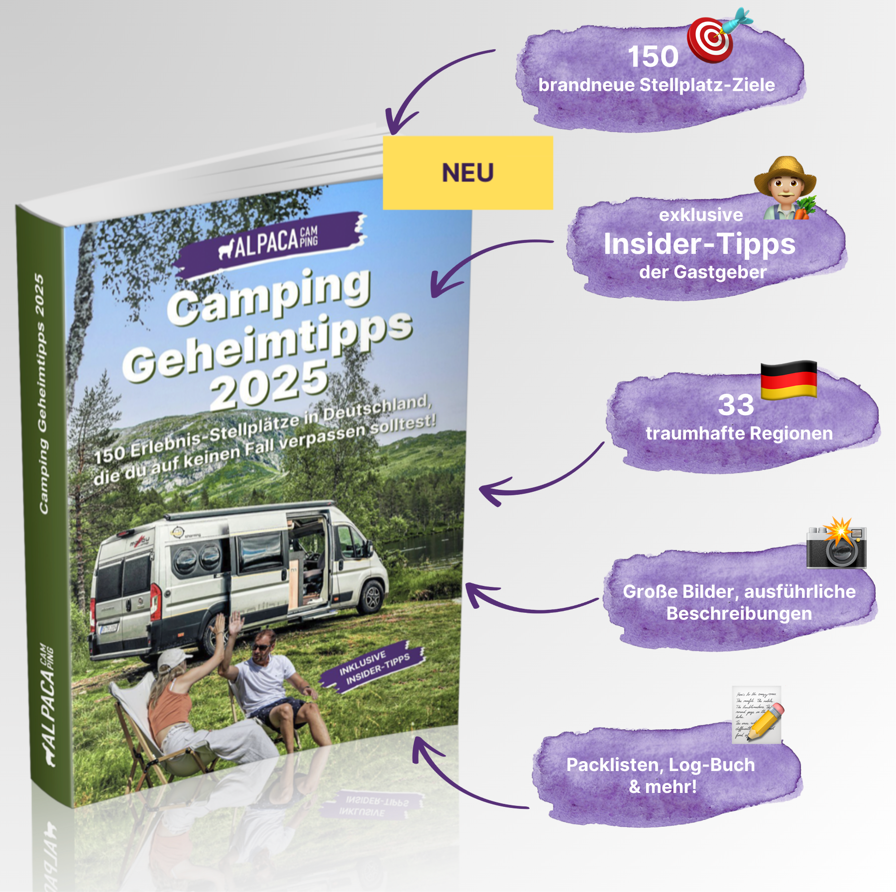 Es sind so viele Stellplätze enthalten, die man teilweise schneller in den Büchern findet als im Internet – besonders praktisch, wenn man unterwegs stöbert. Ich habe schon viele Stellplätze markiert, die ich auf jeden Fall noch besuchen möchte. Dank der QR-Codes zu den Stellplätzen ist auch das Buchen super einfach.