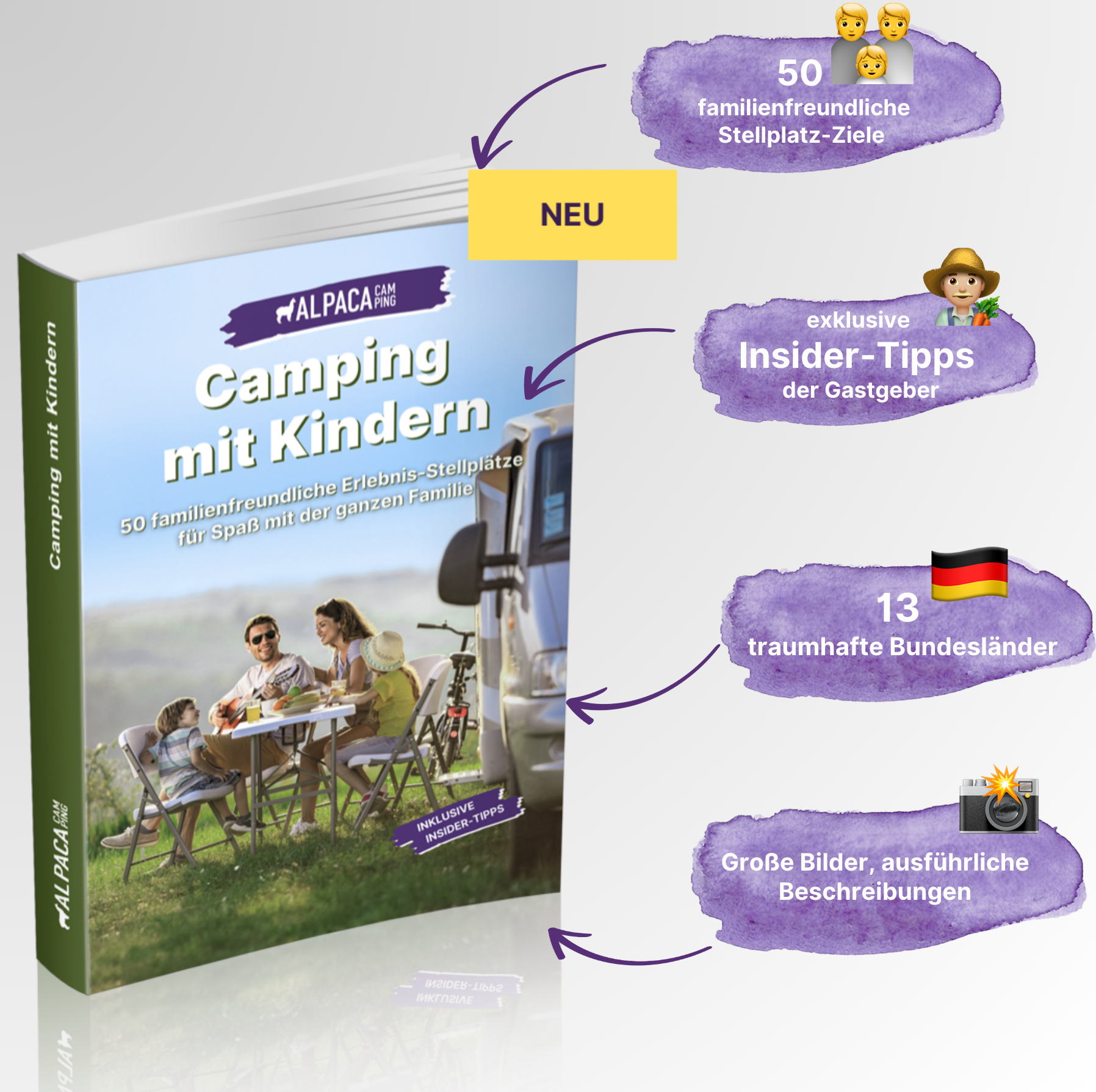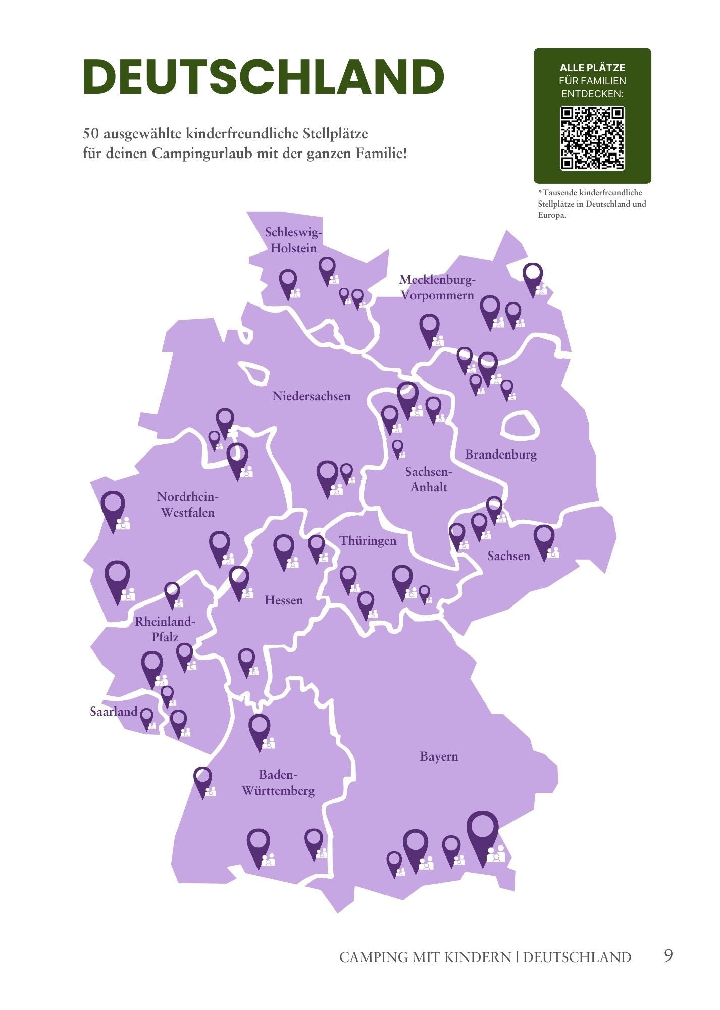 Campen bedeutet für dich Natur, Privatsphäre und Spontanität, gemeinsam mit der ganzen Familie? Dann ist diese kleine Zusatzausgabe zu unsrem Stellplatzführer genau das Richtige für dich! Dich erwarten 50 naturnahe Stellplätze, ganz nach deinem Geschmack, auf denen auch Kinder auf ihre Kosten kommen. In der Nähe von spannenden Freizeitaktivitäten, mit Spielplätzen und/oder Tieren vor Ort. Auf dem Bauernhof oder bei freundlichen, privaten Gastgebern.