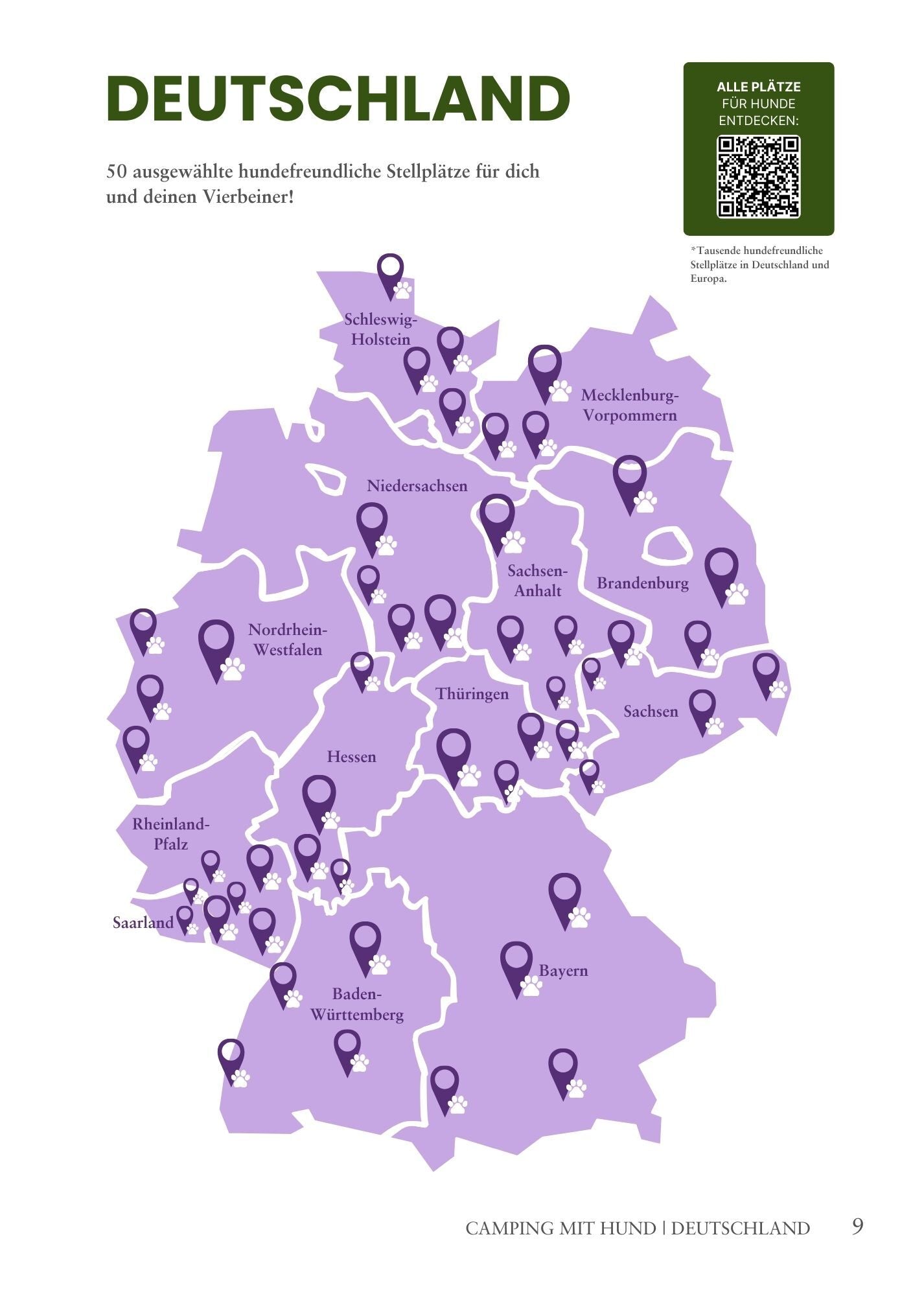 Campen bedeutet für dich Natur, Privatsphäre und Spontanität, gemeinsam mit deinem Hund? Dann ist diese kleine Zusatzausgabe zu unsrem Stellplatzführer genau das Richtige für dich! Dich erwarten 50 naturnahe Stellplätze, ganz nach deinem Geschmack, auf denen du mit deinem Hund campen darfst und dieser herzlich willkommen ist.